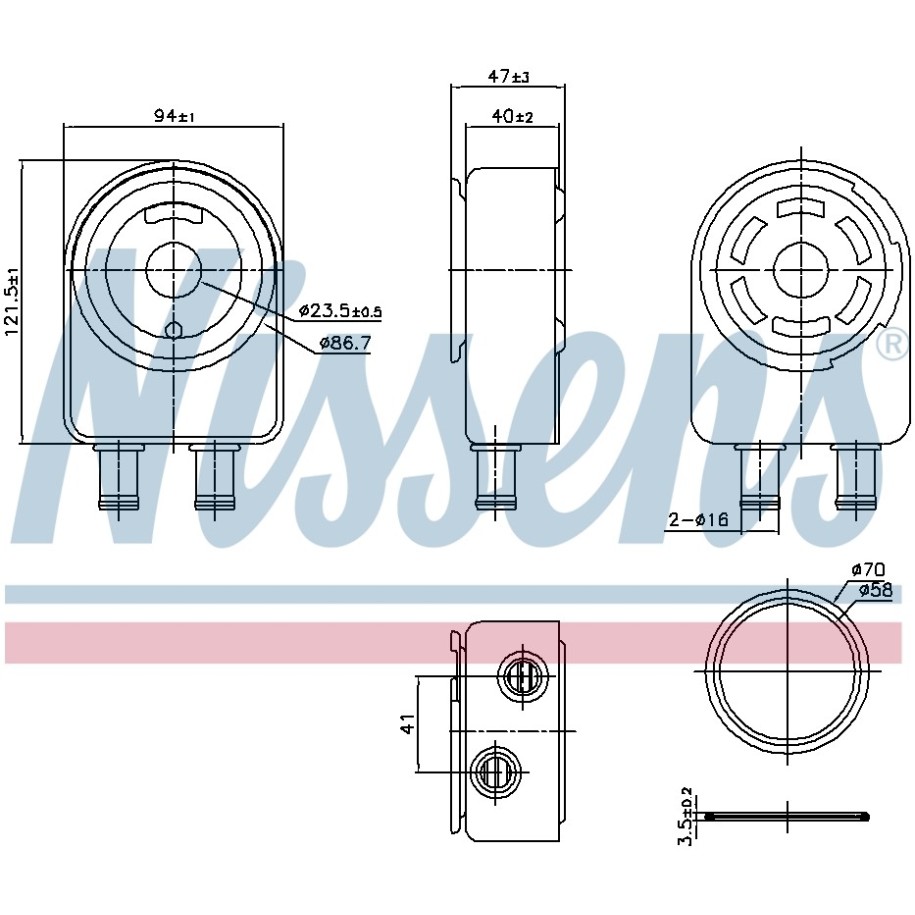 This Engine Oil Cooler OE Ref is supplied by NISSENS as a replacement for OEM reference 264102G101. It is intended for use in selected KIA vehicles and designed to meet original equipment fit and functional requirements.