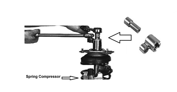 Ensure the Road spring has been compressed using a suitable spring compressor before removing top nut
