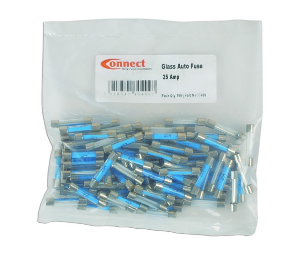 Fuses Standard Auto Glass Pack Of 100 (Glass Fuses) Amps 25A