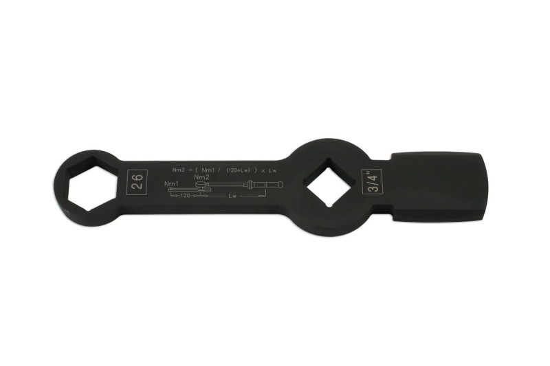 The wrench is engraved with a torque conversion formula to enable the brake caliper screws to be tightened to the correct torque