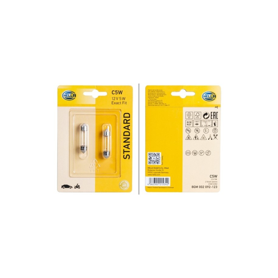 This Number Plate Light Bulb OE Ref 135 4862 is supplied by HELLA as a replacement for OEM reference KDWHLO9236. It is intended for use in selected ABARTH, ALFA ROMEO, AUDI, AUSTIN, BMW, CHRYSLER, CITROEN, DACIA, DAEWOO, DAIHATSU vehicles and designed to meet original equipment fit and function requirements.