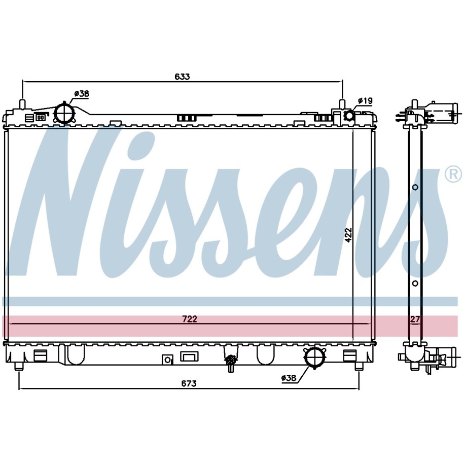This Brand New Radiator OE Ref 1640036150 for LEXUS manufactured by NISSENS.This is a direct replacement Radiator OE Ref 1640036150 part and equivalent to OEM Part number 164000V250 and some other cross reference part numbers. This is top quality and fully guaranteed Radiator OE Ref 1640036150 manufacturer by NISSENS with Reference Number 606546, EAN: 5707286454774. At e Auto Parts, This Radiator OE Ref 1640036150 is available at best competitive prices including Vat at £214.00. We are one of the UK`s leading Engine Cooling System supplier with an excellent feedback from our customers. Buy with Confidence, 30 days money back guarantee!