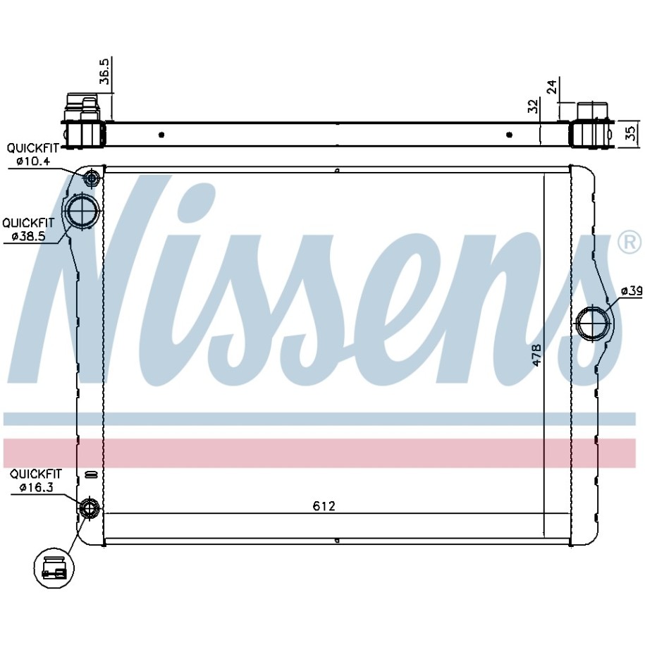 This Radiator OE Ref 17117603745 is manufactured by NISSENS and supplied as a direct replacement for OEM reference 17117573257. Designed for use in selected BMW vehicles, it is intended to meet original equipment fit and function requirements.