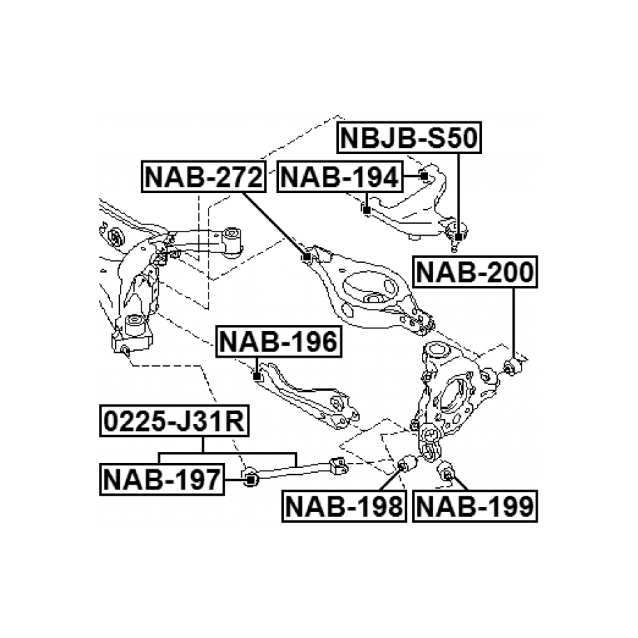 At e Auto Parts, we take pride in offering high-quality automotive parts, like this Rear Upper Control Arm Bush OE Ref 55045 JA000, designed specifically for INFINITI, NISSAN. With a precise match to OEM Part Number 55045AG000, this part is manufactured by FEBEST to ensure durability and exceptional performance. Priced at £27.00, including VAT, it comes with Reference Number NAB-194 and EAN EAN: 4056111033587 for easy identification.