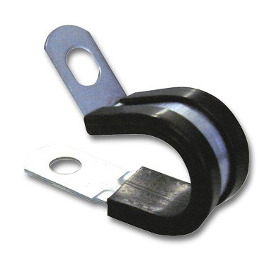 Pipe clips with a fixing hole which is rubber lined to protect damage to any pipe