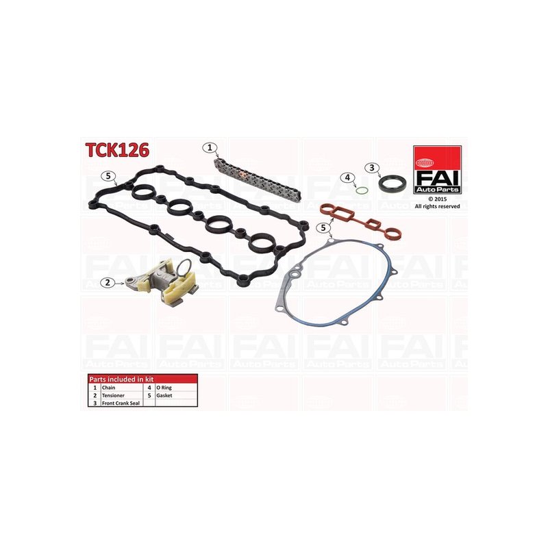 This Timing Chain Kit FAI OE Ref 06D109229B is crafted to the highest standards, providing an OEM-quality replacement for Part Number 06D109229A. Manufactured by FAI, it is rigorously tested to ensure optimal performance and longevity. Available for just £222.00, it includes Reference Number TCK126 and EAN EAN: 5027049304352 for easy identification.