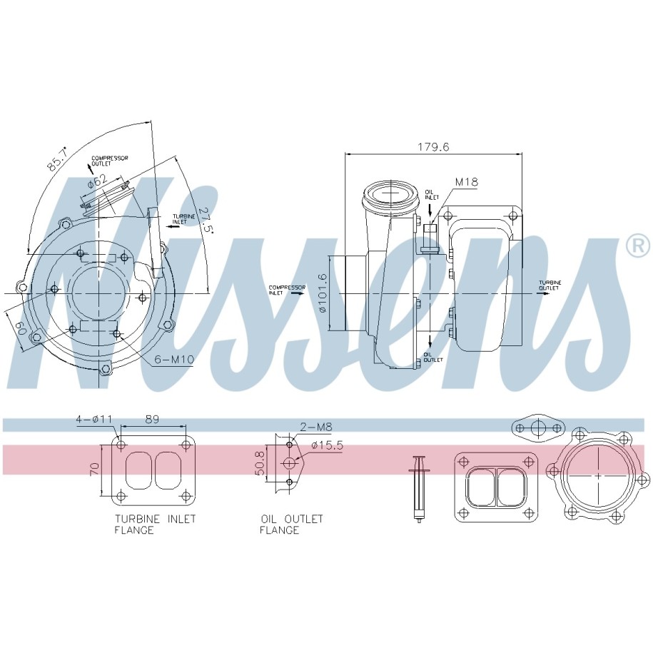 This Turbocharger OE Ref 51091007750 is supplied by NISSENS as a replacement for OEM reference 51091007707. It is intended for use in selected your vehicle vehicles and designed to meet original equipment fit and functional requirements.