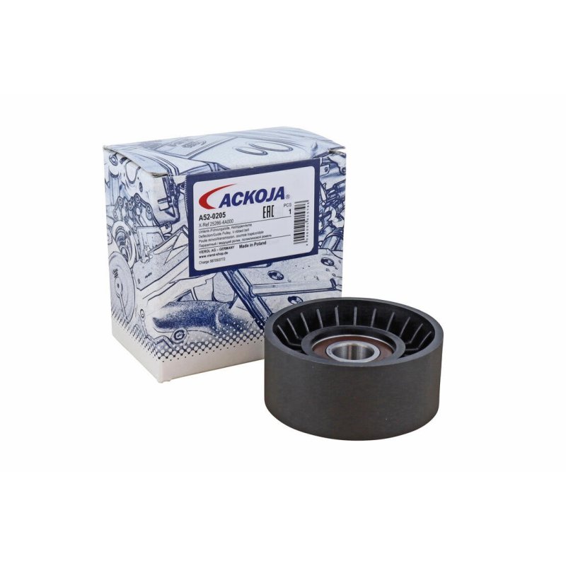 This Vribbed Belt Deflection Guide Pulley ACKOJA OE Ref is supplied by ACKOJA as a replacement for OEM reference 252864A000. It is intended for use in selected HYUNDAI, KIA vehicles and designed to meet original equipment fit and function requirements.