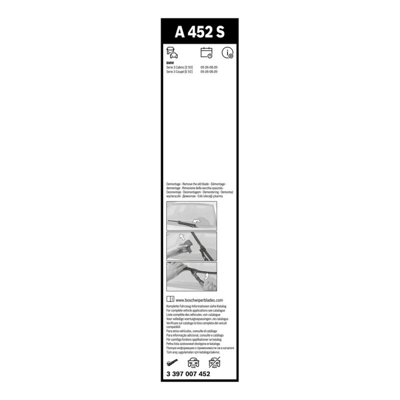 Engineered to replace OEM Part Number 61617156483, this Wiper Blade BOSCH 3 397 007 452 OE Ref 61617170570 is the ideal choice for your ALPINA, BMW. Manufactured by BOSCH, it offers unparalleled reliability and performance. Available at £47.00 (VAT included), it’s marked with Reference Number 3397007452 and EAN EAN: 4047024494305 for easy tracking.