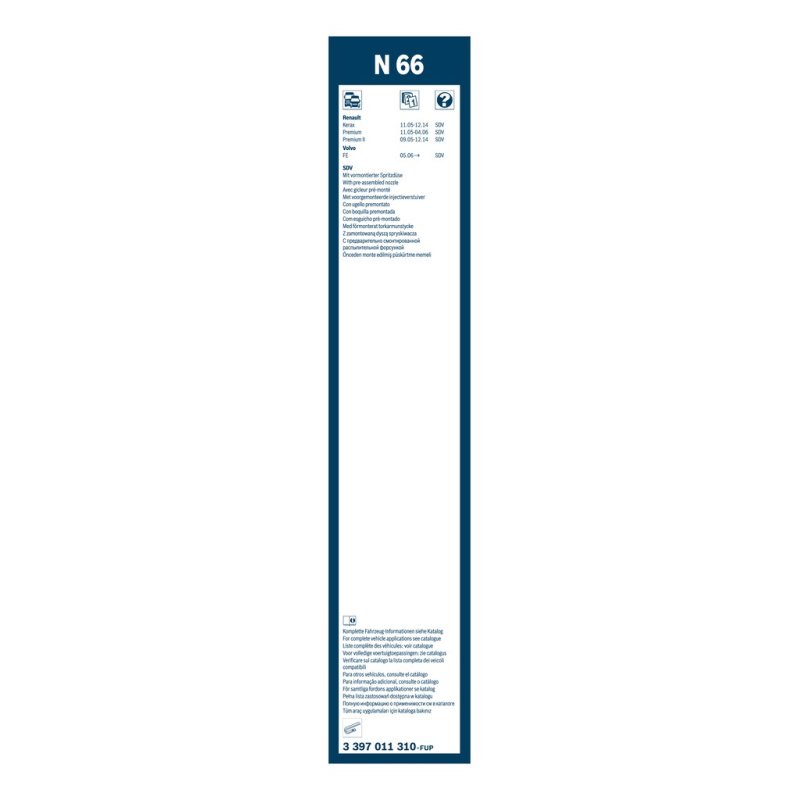 Engineered to replace OEM Part Number 5001867083, this Wiper Blade BOSCH 3 397 011 310 OE Ref 20872878 is the ideal choice for your ABARTH, ALFA ROMEO, ALPINA, AUDI, BENTLEY, BMW, CADILLAC, CHEVROLET, CHRYSLER, CITROEN. Manufactured by BOSCH, it offers unparalleled reliability and performance. Available at £35.00 (VAT included), it’s marked with Reference Number 3397011310 and EAN EAN: 4047024412453 for easy tracking.